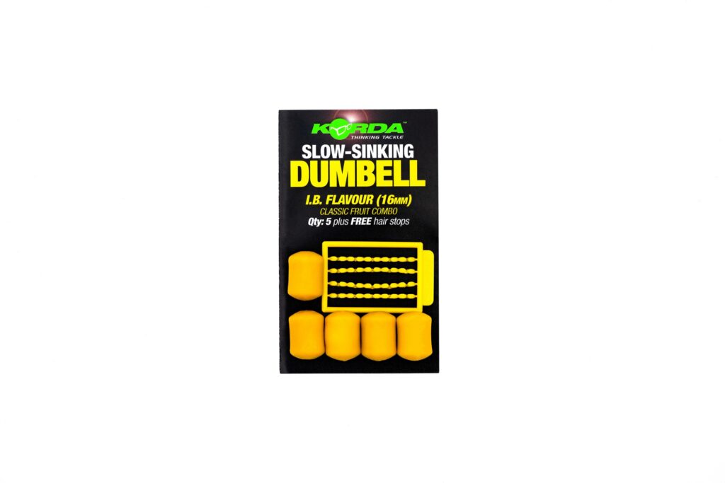 Slow-Sinking Dumbell, u našem asortimanu lažne hrane, odličan je izbor kada postoje neugodne vrste poput rakova koje bi mogle ukrasti vaš mamac. Dizajnirani su da sjednu na dno, ali su dovoljno plutajući da će lako otploviti u usta ribe kada pokuša uvući mamac. Dolaze u različitim veličinama – 8 mm, 12 mm ili 16 mm – kako bi pokrili svaki ribolov bilo da pecate preko sloja sitnih čestica ili koristite boile, ili čak kao mamac za jednu udicu jer je plastika impregnirana okusom, kao kao i prilično vizualan. Postoji izbor između četiri različite kombinacije okusa/boje: Banoffee (bijelo); IB (žuta); Voćne lignje (ružičaste); i Fishy Fish (bež). Svako pakiranje također sadrži odgovarajuće kopče za kosu u boji i dobivate 10 x 8 mm; 8 x 12 mm; ili 5 x 16 mm.