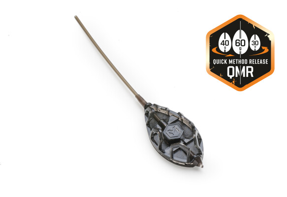Jedinstvena hranilica marke MIVARDI s QMR sustavom. Ovaj sustav omogućuje jednostavnu zamjenu hranilice na gotovom sistemu za drugu vrstu ili veličinu QMR hranilice u roku od nekoliko sekundi. Posebno oblikovano tijelo osigurava pouzdano, postupno otpuštanje i raspadanje mamaca sa svih strana, a istovremeno savršeno drži mamac tijekom dugih zabačaja. Optimizirana je za korištenje sa srednjim i finijim mješavinama mamaca. Hranilica je precizno izlivena od izdržljive plastike u tamnoj, dimljeno maslinastoj boji. Utezi na dnu hranilice su u kamuflažnom dizajnu. Hranilica dolazi s adapterom za brzu zamjenu krajnjeg sistema i rukavom protiv zapetljavanja.