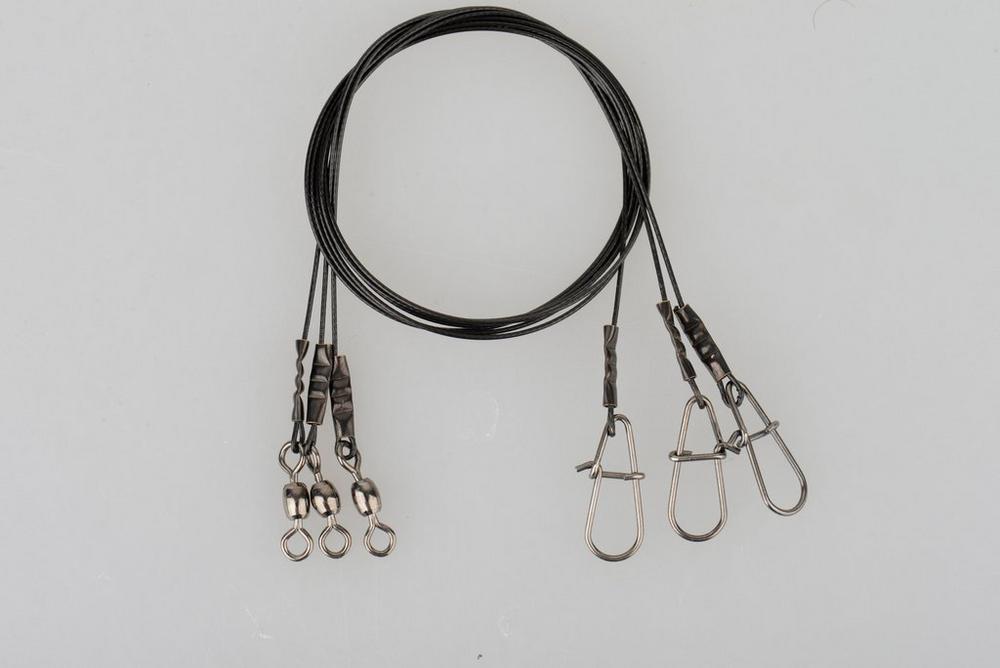 Ultra jaka žica od nehrđajućeg čelika sa sedam žica, presvučena jakim crnim kopolimerom, za vrhunsku otpornost na abraziju. Zakretna i igla od opružnog čelika savršene veličine, za tvrde ili meke varalice. Idealana sajla za veliku štuku i soma.