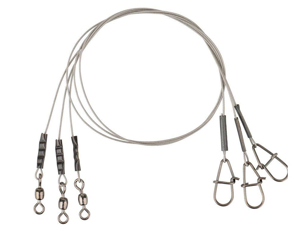 Ultra jaka, mekana i fleksibilna žica od nehrđajućeg čelika s 49 niti, obložena jakim ugljičnim kopolimerom, za vrhunsku otpornost na habanje! Vrtilica i opružna čelična kopča savršene veličine, za tvrde ili mekane varalice! Savršen za ribolov štuke!