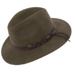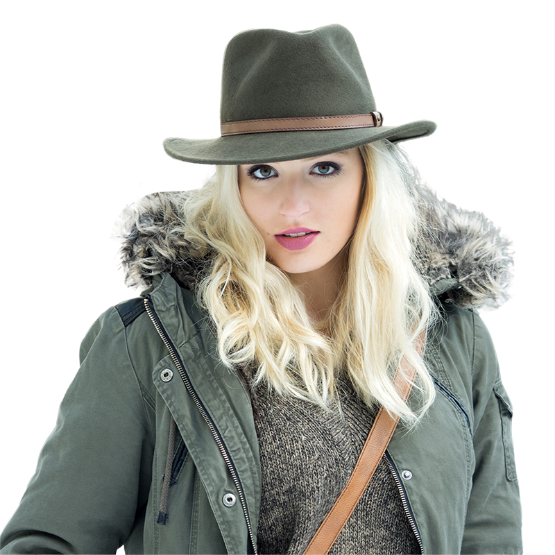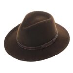 Izvrstan šešir sa ukrasnom kožnom trakom. Klasični filcani šešir od 100% vune, širokog oboda, vodoodbojan, drobljiv i motalan, lako se vraća u formu u samo nekoliko koraka.