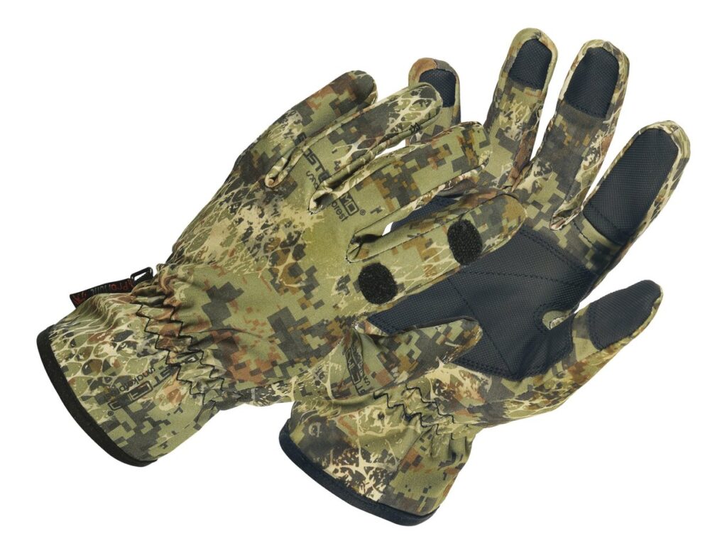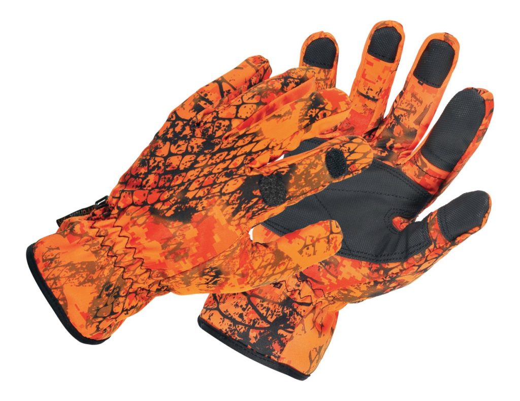 Vodonepropusne i dišuće lovačke rukavice u camo-snake/orange boji.