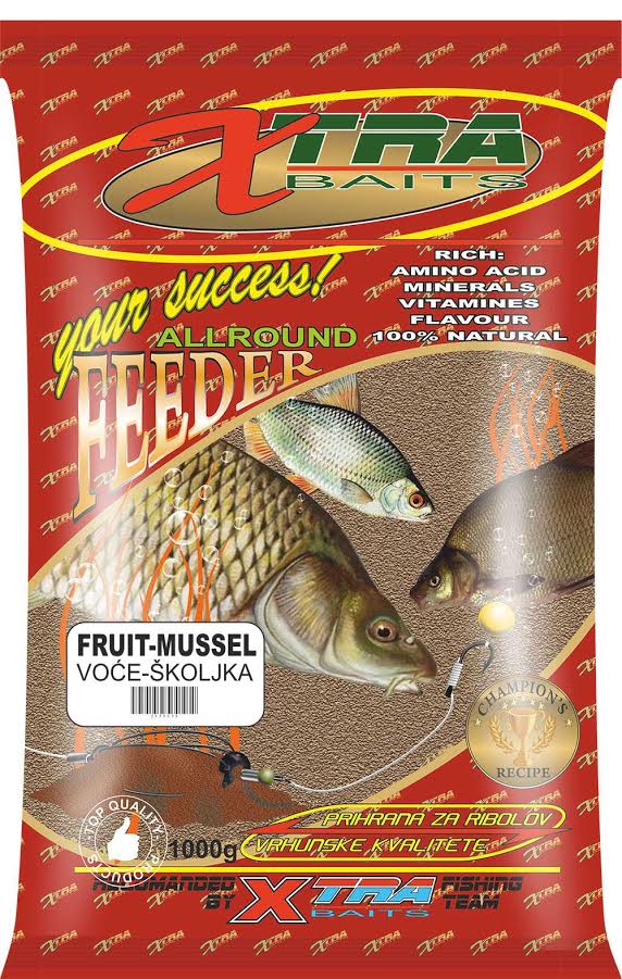 Hrana namjenjena za različite vrste riba, a posebno pripravljena za tehniku lova hranilicom. Mješavina arome voća i školjke, pakirana u vrećice od 1kg.